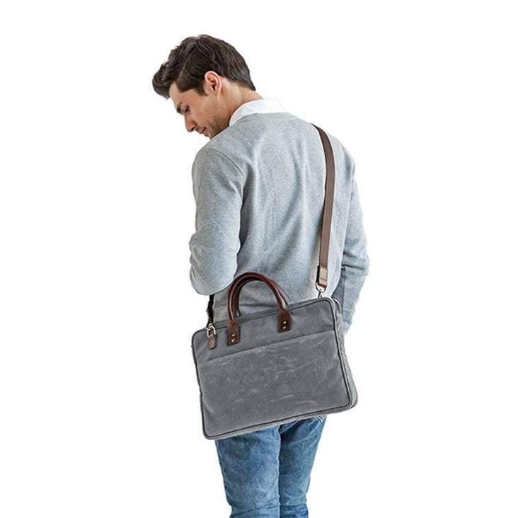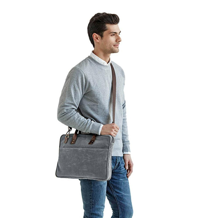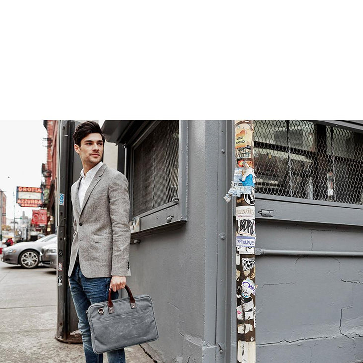 ONA The Kingston Laptop Briefcase Waxed Cotton - Smoke (ONA040GR)