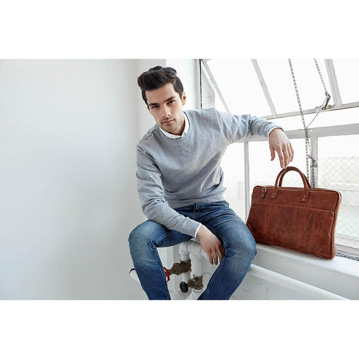 Handcrafted with full-grain Italian leather that develops a rich patina with time, The Leather Kingston Laptop briefcase in Antique Cognac from ONA is designed to accommodate 13” and 15” laptops. The Kingston features a dedicated laptop slot as well as organizational pockets for your cell phone, iPad Mini, pens, and other small items. Spacious enough to carry an AC adapter for those long meetings, the Kingston’s slim silhouette makes it a perfect, lightweight companion for your daily commute. Carry the Kingston with its top carry handles, or sling it over your shoulder with the included strap.