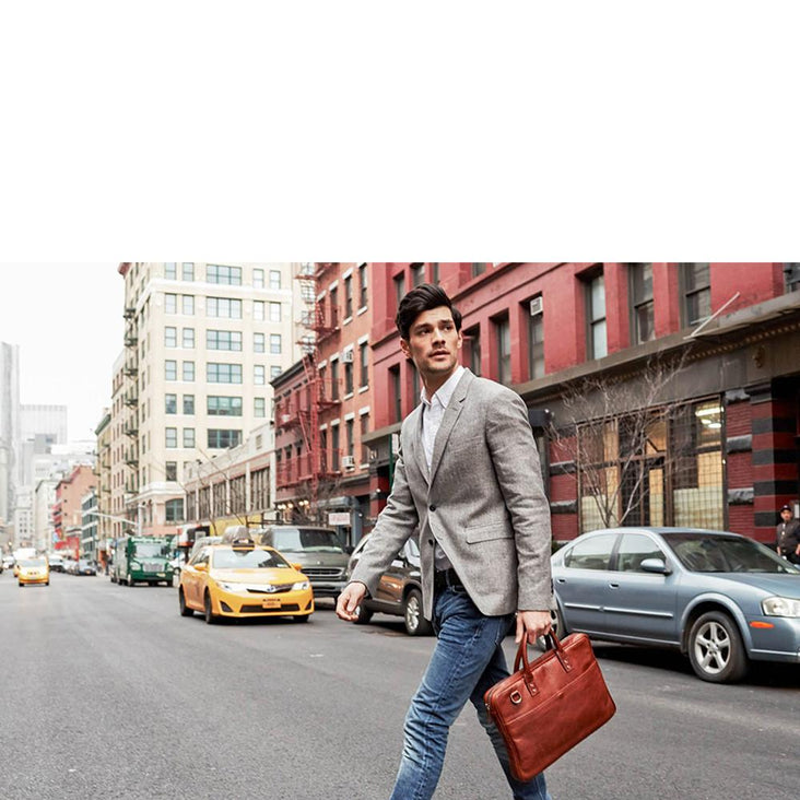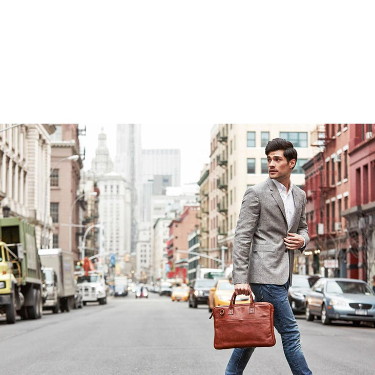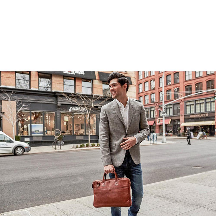 Handcrafted with full-grain Italian leather that develops a rich patina with time, The Leather Kingston Laptop briefcase in Walnut from ONA is designed to accommodate 13” and 15” laptops. The Kingston features a dedicated laptop slot as well as organizational pockets for your cell phone, iPad Mini, pens, and other small items. Spacious enough to carry an AC adapter for those long meetings, the Kingston’s slim silhouette makes it a perfect, lightweight companion for your daily commute. Carry the Kingston with its top carry handles, or sling it over your shoulder with the included strap.