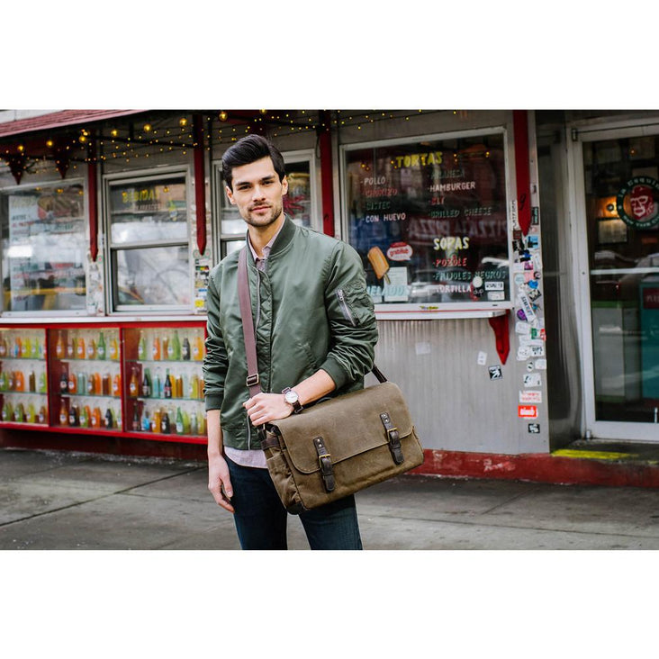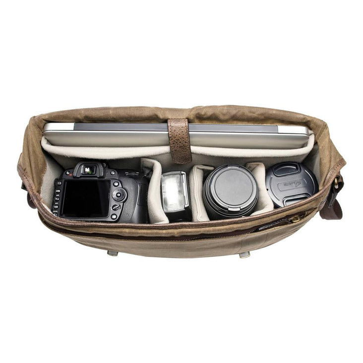 The Ranger Tan Union Street Messenger Bag from ONA is a weather-tough shoulder bag designed for anyone interested in a bag that is little to the left of your basic traditional shoulder bag. Designed to handle your DSLR and three lenses, it will also hold your 15 inch (38.1 cm) laptop in its own separate, removable compartment.The compartment contains a strap to hold the computer in its place.