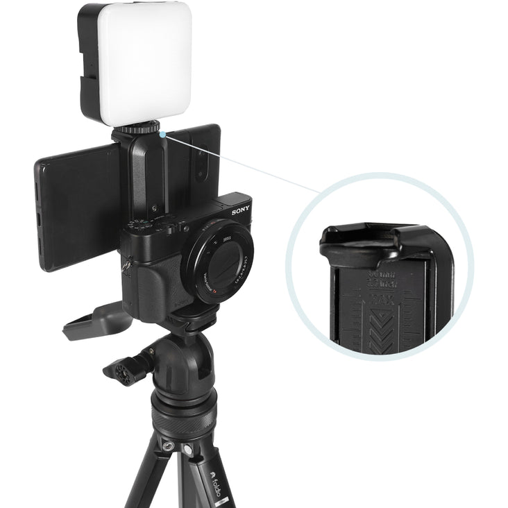 With a compact three-leg design, it fits tightly when folded without gaps, balancing portability and stability for efficient space-saving. The TT Tripod's handle provides anti-shake control and 360-degree rotation for smooth shots, doubling as a universal phone holder adjustable up to 3.3 inches to fit most smartphones.