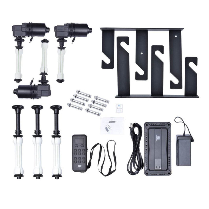 The video shown is an example of a similar four-backdrop roller system and is intended as an installation guide. This motorised roller system is for three backdrops only as per the pictures and What's Included.