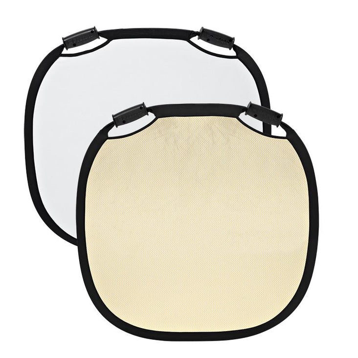 Shape sunlight or bounce flash light with our handy Reflectors. The SunSilver side creates a somewhat warmer light with a slightly higher output and more contrast. The white side reflects the light more naturally.