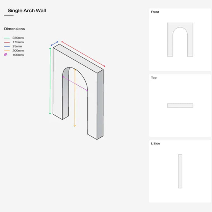 Measuring 230mm x 175mm x 25mm x 200mm x 100mm, this styling prop is the perfect size for all your creative endeavors. Whether you're a professional photographer, a set designer, or just looking to add a touch of glamour to your home, the Propsyland Mint Green Single Curved Arch Wall Styling Prop is the perfect choice!