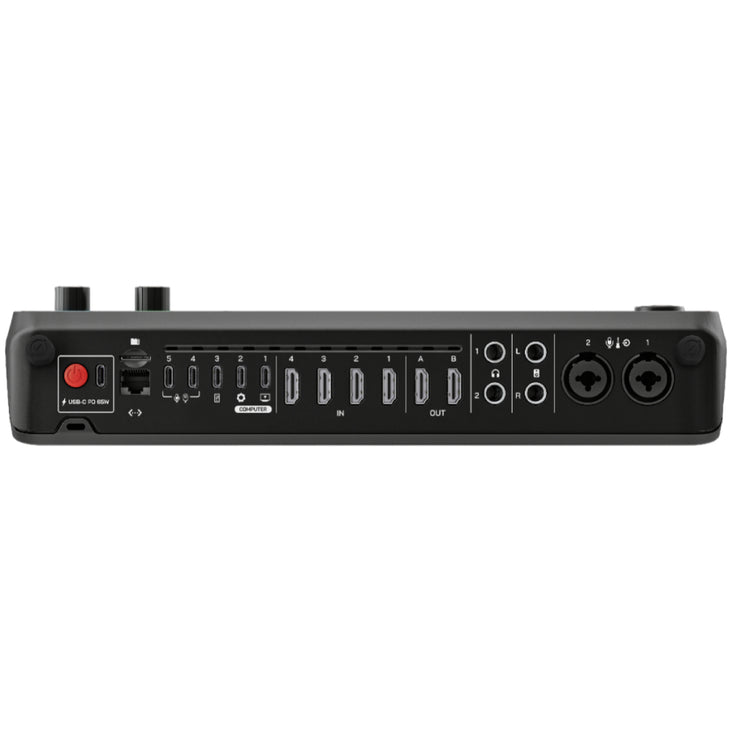 Two flexible USB-C ports for connecting webcams and RODE USB audio devices to use as additional video and audio sources.