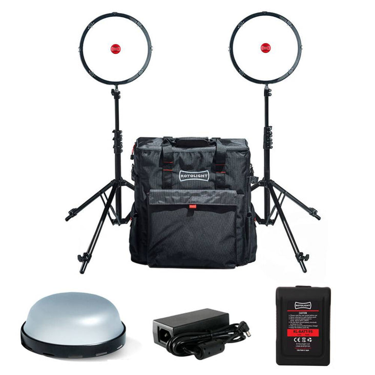 Be ready for any interior or exterior shoot, whether you're on the move or static, with the Rotolight AEOS 2 Ultimate 2-Light Kit. This kit comes with two AEOS 2 light fixtures with diffuser domes, two batteries, two power supplies, a soft carry bag and two stands. Perfect for field production shoots such as narrative, documentary and interviews, the included batteries and chargers allow you to move with the lights or run without needing extension cords. This gives you the freedom to use the light fixtures to match daylight, tungsten or create theatrical colour effects.