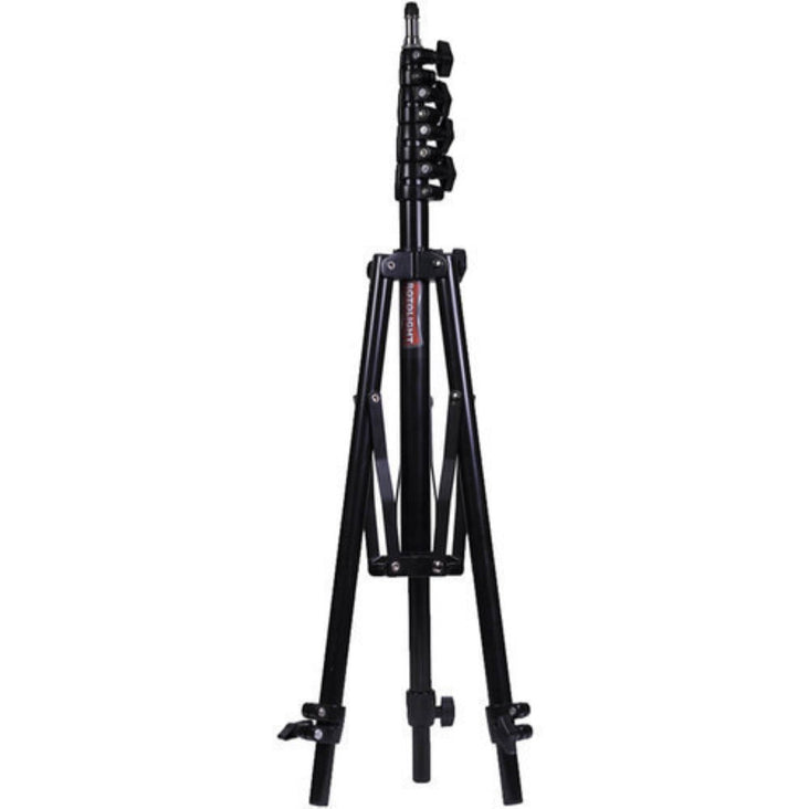This medium-weight black Portable Light Stand from Rotolight is designed to support an AEOS LED light. It has a four-section design and can reach a maximum height of 72.5" when fully extended. For easy storage and transport, it collapses into a compact 19" bundle.