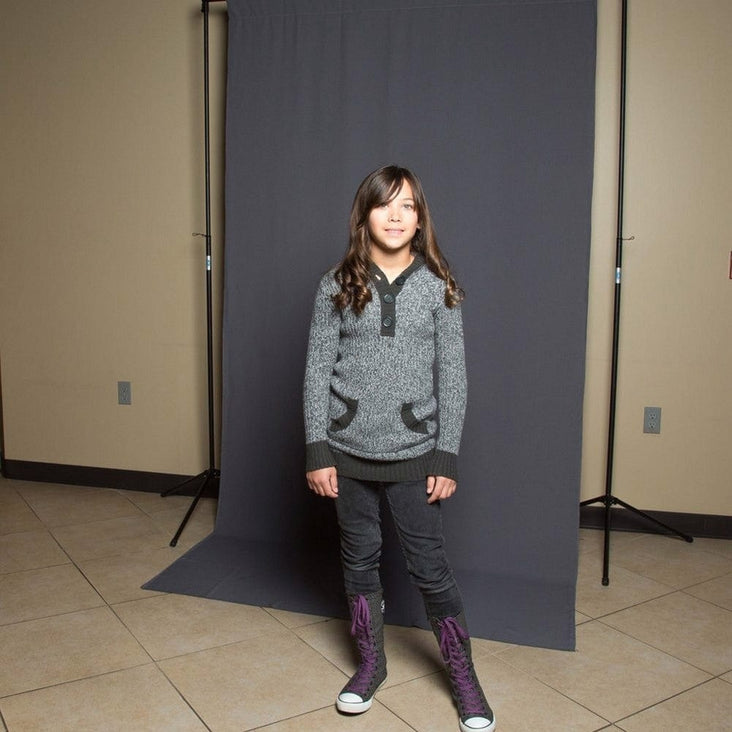 Savage's Grey Economy Backdrop Kit is the perfect setup for small studio space! Our grey polyester background is sold individually or sold as an economical kit complete with a lightweight background stand and a complimentary carry bag. Backdrop is sized to 5' x 9' (1.52m x 2.74m) and made from a wrinkle-resistant matte material, offering a true charcoal grey finish that doesn't fade even under direct lights and high exposures.