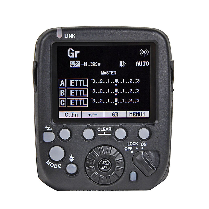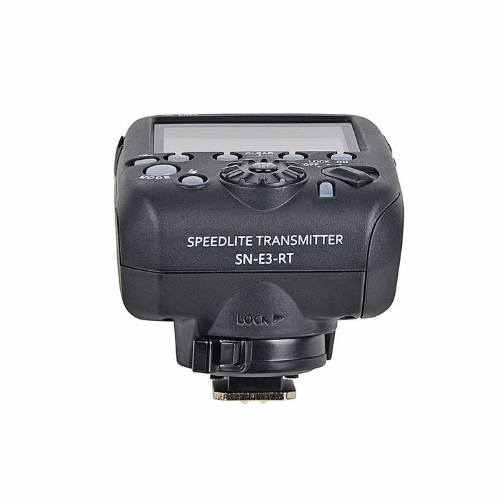 Radio communication distance up to 100 meters Unique high-resolution TFT color screen Operation interface has various font color and background color for optional Operation interface supports multiple languages The screen brightness can be adjusted (100%~20%) according to use environment Multiple SN-E3-RT can be shared to use the same flash when the flash off the camera It can display the off-camera flash groups and recycle time information It can upgrade the firmware through the USB port Quick locking structure AF assit Wireless shutter control, Linked shot ETTL/M/Multi/Gr 4 modes A/B/C/D/E 5 flash groups Up to 15 off camera flashes Support high-speed sync, first-curtain sync Support ETTL flash ratio, exposure compensation, AE lock, Bracket Exposure, modeling flash Custom setting function Auto-Save function.