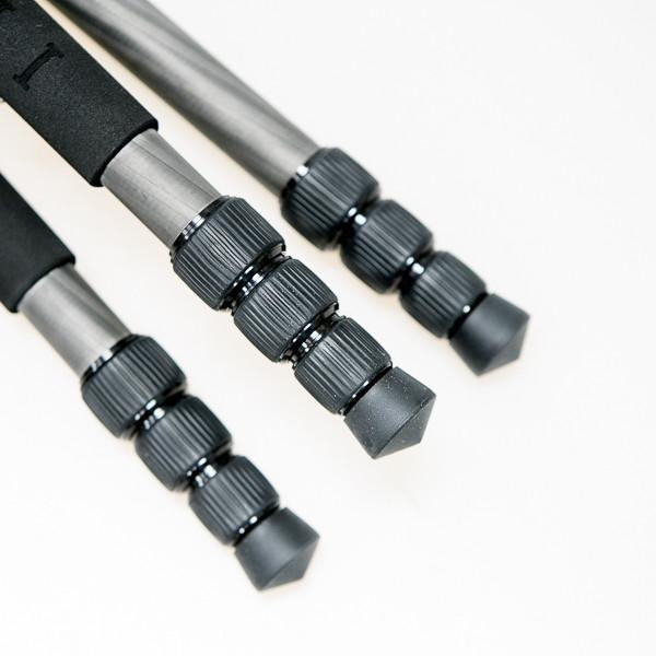The legs can be swivelled 180 degrees to the top so that the tripod, when folded, is only 40cm high Each leg is composed of 4 sections with 3 sealed Ring-locks The rubber feet on the tripod means a secure stand on any surface