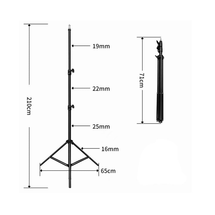 The Spectrum 210cm Black Matte LumiStand Compact Light Stand is a versatile and durable solution for photographers and content creators. Crafted from high quality aluminum alloy, this sturdy stand offers stability and longevity while supporting up to 6kg of equipment. With an adjustable height range from 81cm to 210cm, it’s ideal for content filming, portrait and product photography. The three-section design allows for effortless height adjustments, secured with durable aluminum locking knobs. When folded, it compacts to just 71cm, making it easy to transport and store. Its rubber feet ensure a secure grip on various surfaces, providing reliable support for your lighting setup.