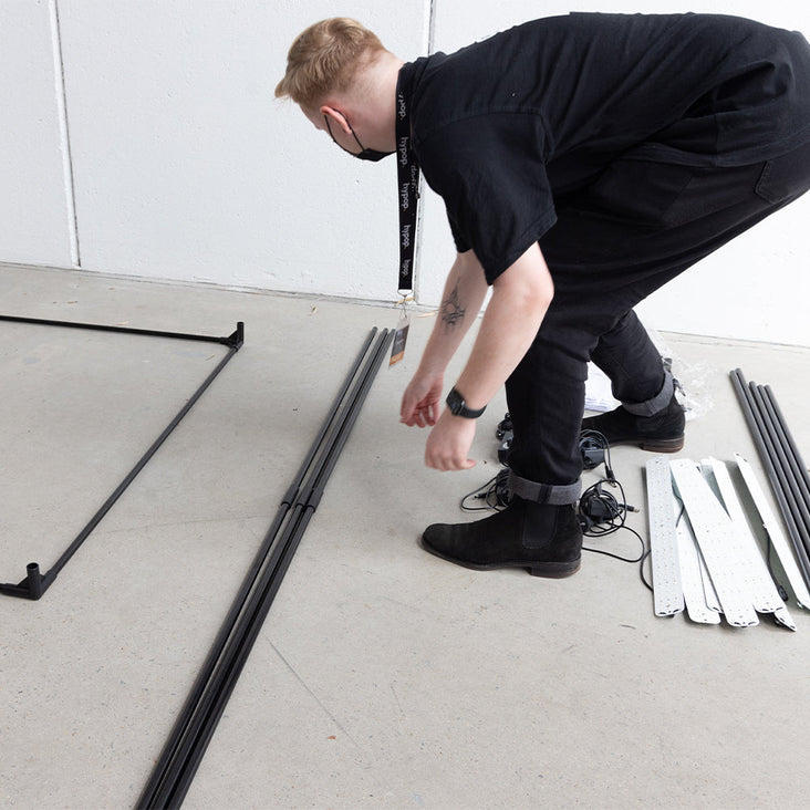 Please note: This is a demo stock item and has some cosmetic marks and scratches especially at the base where the light tent touches the ground. We used it for one photoshoot otherwise in good working condition.