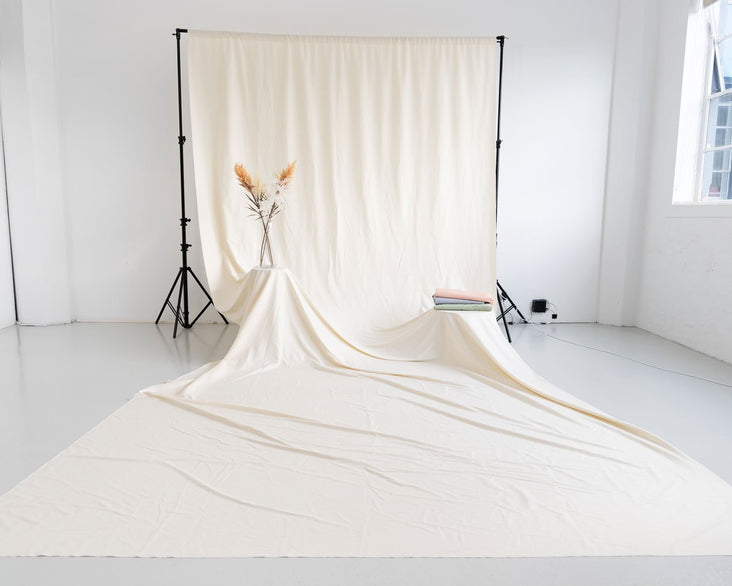 The poly-cotton blend one-piece design with offer a seamless finish, it can be steamed to remove wrinkles for a smooth backdrop or the natural folds can be left to keep it more textured and natural.
