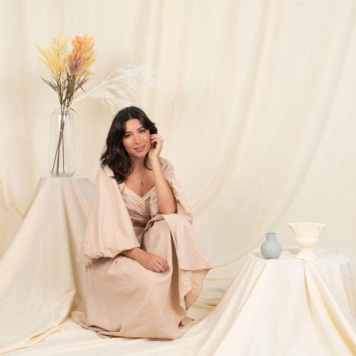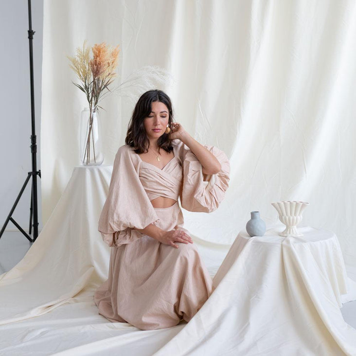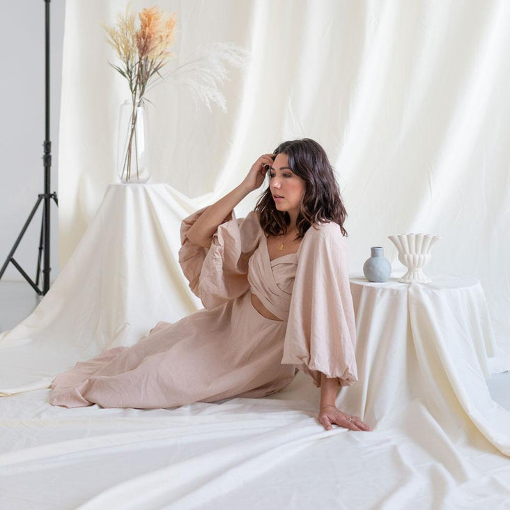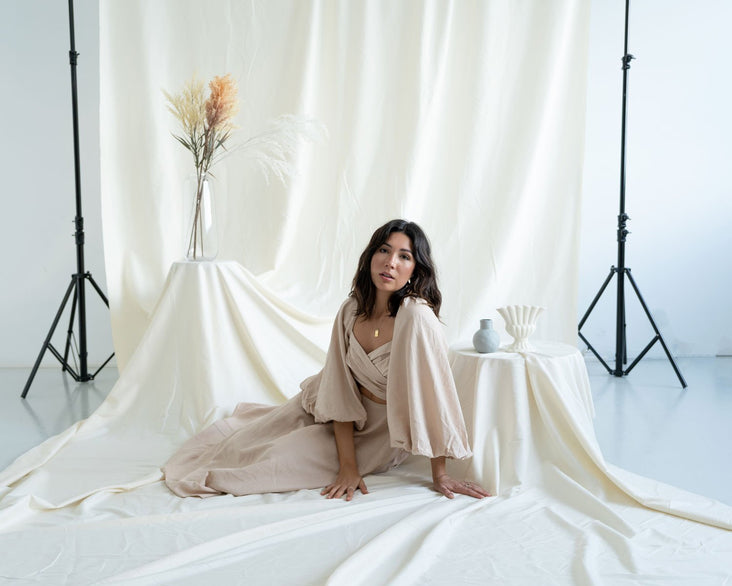 The 'Buttercream' Muslin backdrop has a warm yellow hue that is beautifully subtle and will work within a vast range of shooting conditions. It is the perfect backdrop for both natural and studio lighting.