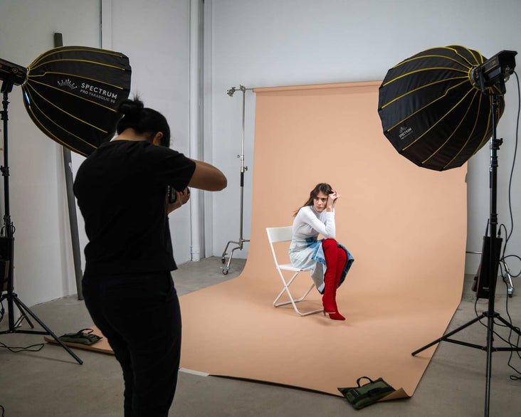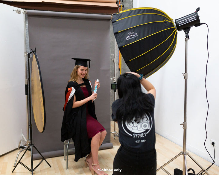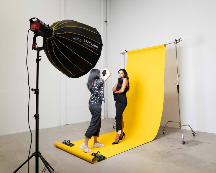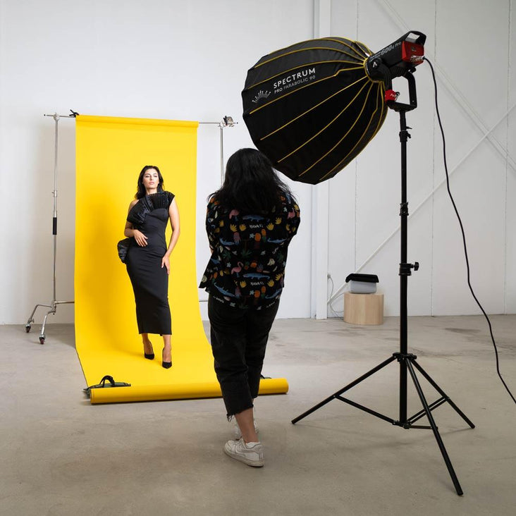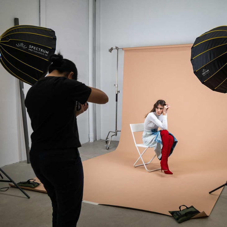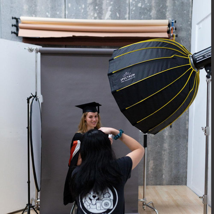 When you want to add a little drama to your setup look no further than the Spectrum Pro Collapsible Parabolic Softbox. The deep parabolic design helps you create dynamic images and can achieve both soft and harsher lighting.