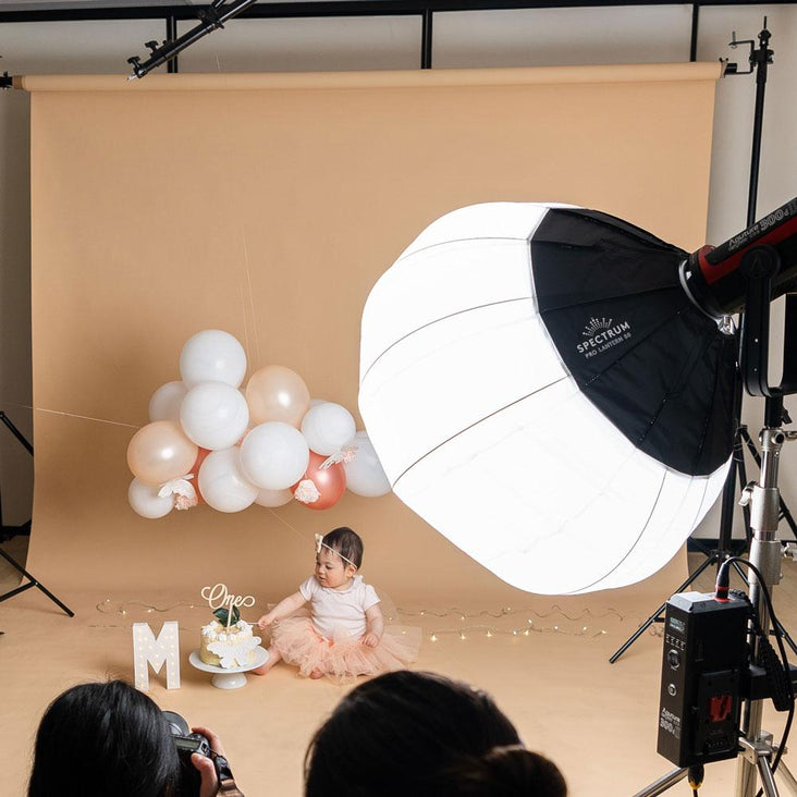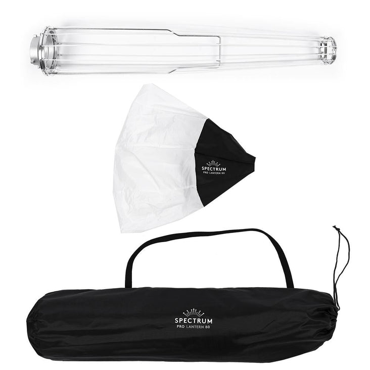 Creating beautiful even ambient light is easy with the 80cm Spectrum Pro Collapsible Softball Lantern softbox. It omits an omnidirectional wide beam of light for a soft lighting feel that is less directional than traditional softboxes.