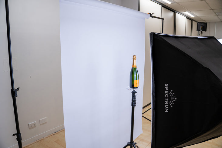 Elevate your product photography with the Spectrum Transparent Acrylic Platform, perfect for capturing stunning images of glass and bottle products.