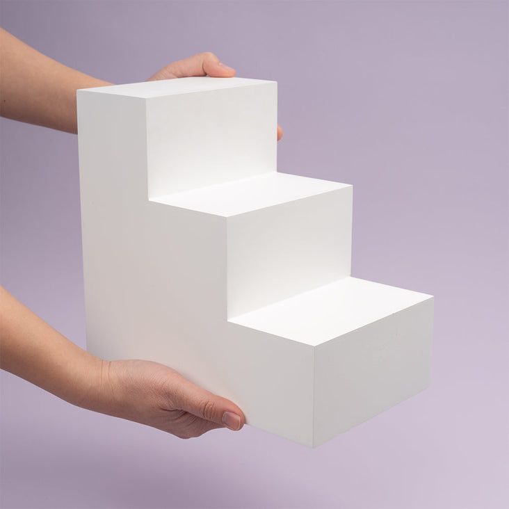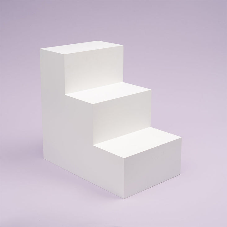 Bold & Minimal! Introducing the Spectrum White PRO.PROPS Styling Photography Stair Prop in Large 3 Steps style. These eye-catching and versatile steps are perfect for cosmetics, fashion, beauty, food & beverage product photography and styling. They will elevate your products to new heights, quite literally!