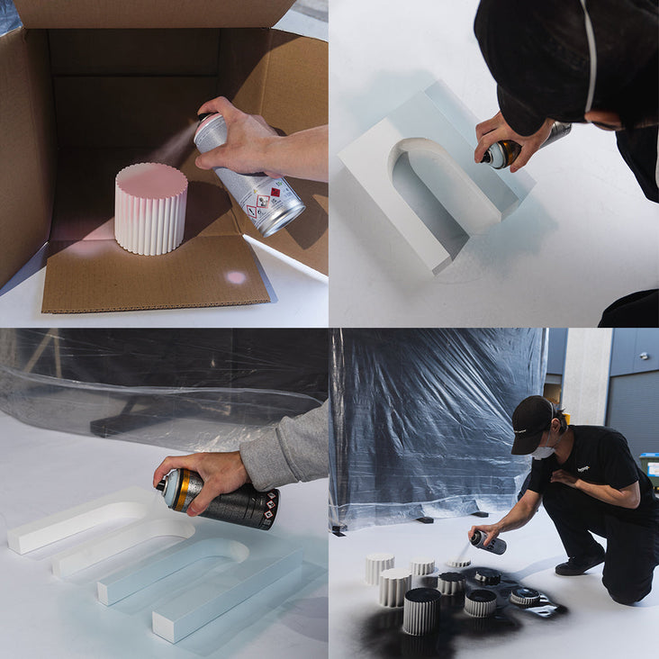 They come primed and painted in white, ready to be painted to your choice of colour or simply colour-adjusted in Photoshop. To paint, we suggest sanding them down before applying your chosen water-based paint. We recommend the MTN 94 spray paint. So versatile, you can easily re-paint the props again and again to suit the colour scheme of your next project.