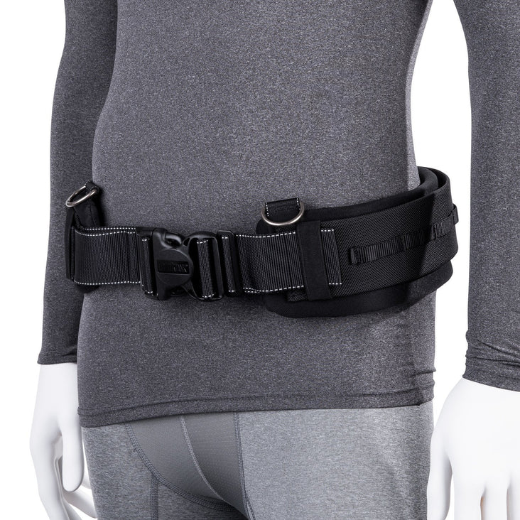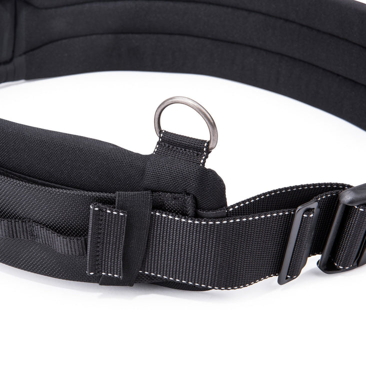 Curved, wide belt provides additional lumbar support to carry heavier gear