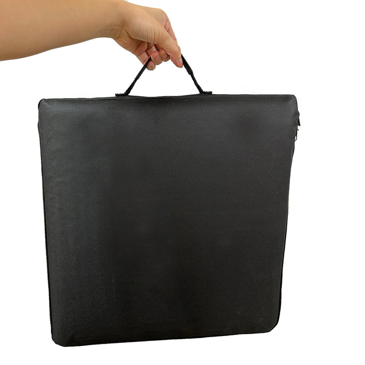Folds up into its own carry case. Compact, easy to store and lightweight for the space conscious photographer, no need to worry about bulky gear.