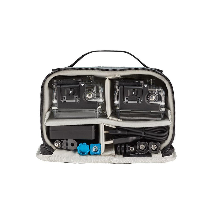 The Tool Box is one of the most versatile storage solutions we've ever made. It's the perfect combination of protection and organization for everything from GoPro® camera systems and professional flash units to the smallest batteries and accessories. The walls and dividers are made with a layered combination of protective EVA foam and rigid PE board to keep contents safe (and from shifting between compartments) inside any bag. Gear is always visible at a quick glance through the clear TPU window. Elastic loops keep a tight grip on batteries and cables.