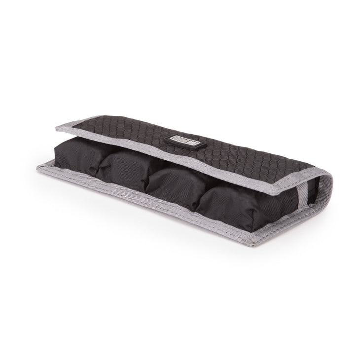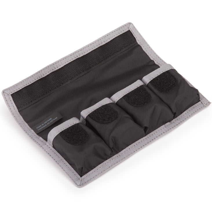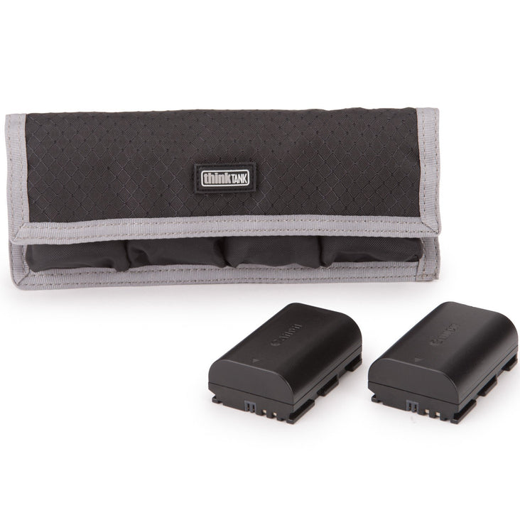 Compact carrier for up to four DSLR batteries for standard camera bodies