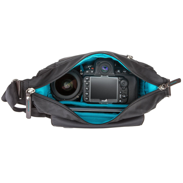 With room for pro-size lenses and hoods, your gear will feel right at home and be at your fingertips. Extensive pockets and compartments make this camera bag as functional as it is fashionable.