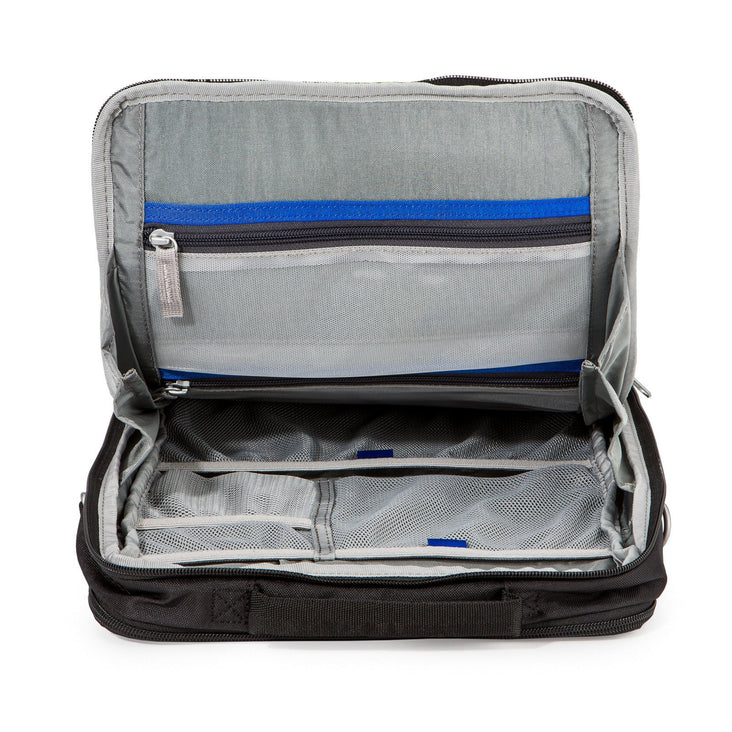 - Expansive accessory compartment with clear zippered pockets and mesh pouches