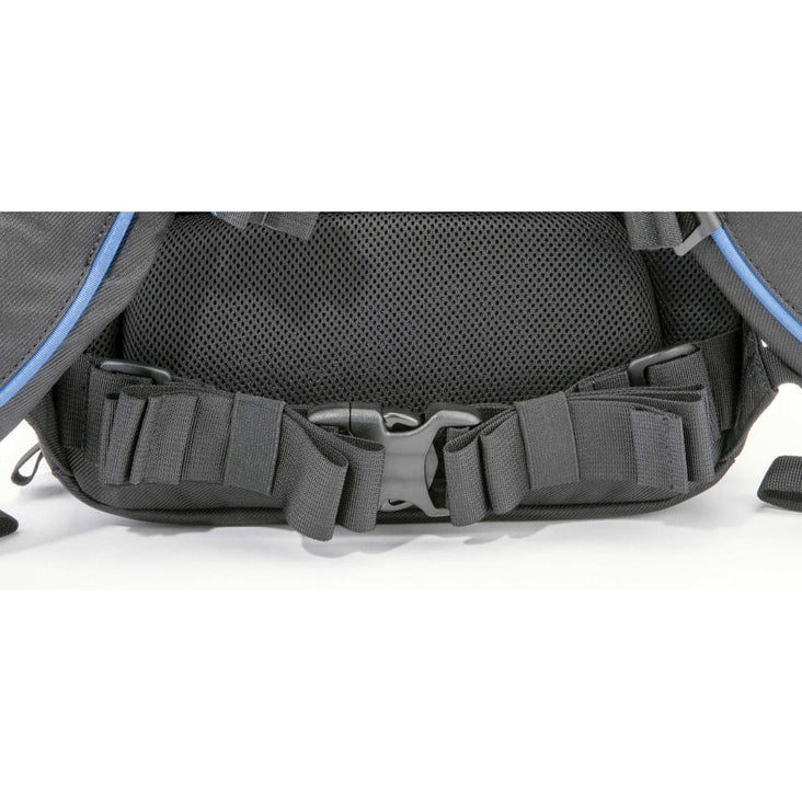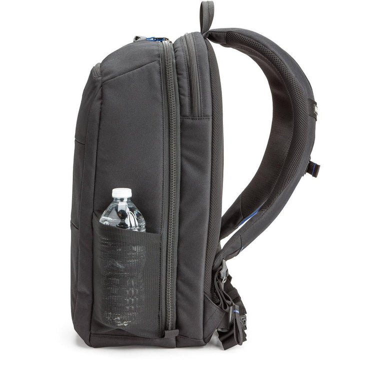 Think Tank Photo designed their black Perception Pro Backpack as a day pack that gives you maximum mobility without sacrificing carrying capacity. This versatile bag has a padded and divided compartment accommodates laptops up to 15" plus tablets up to 10". The main compartment can hold a mirrorless camera body or a small DLSR with a small to medium zoom lens attached with the lens hood reversed, plus 4-5 additional lenses or a large GoPro/action cam kit.