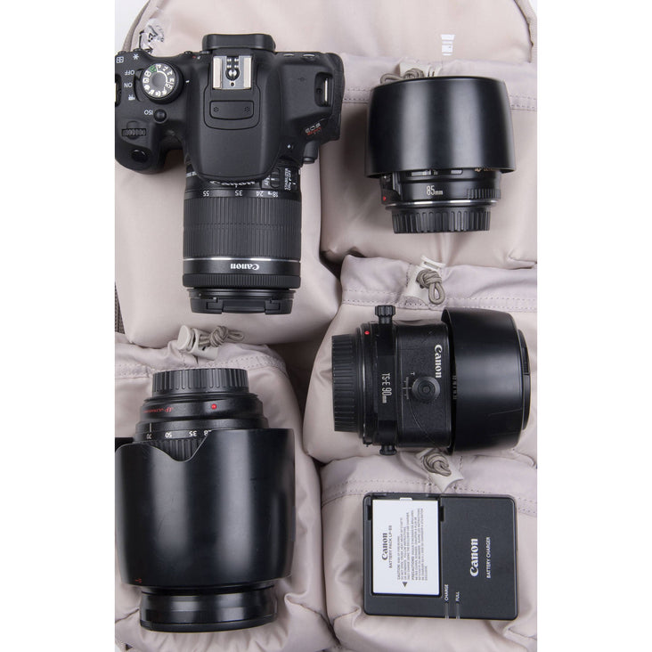 - Fits one mirrorless body or small DSLR with a small to medium zoom attached