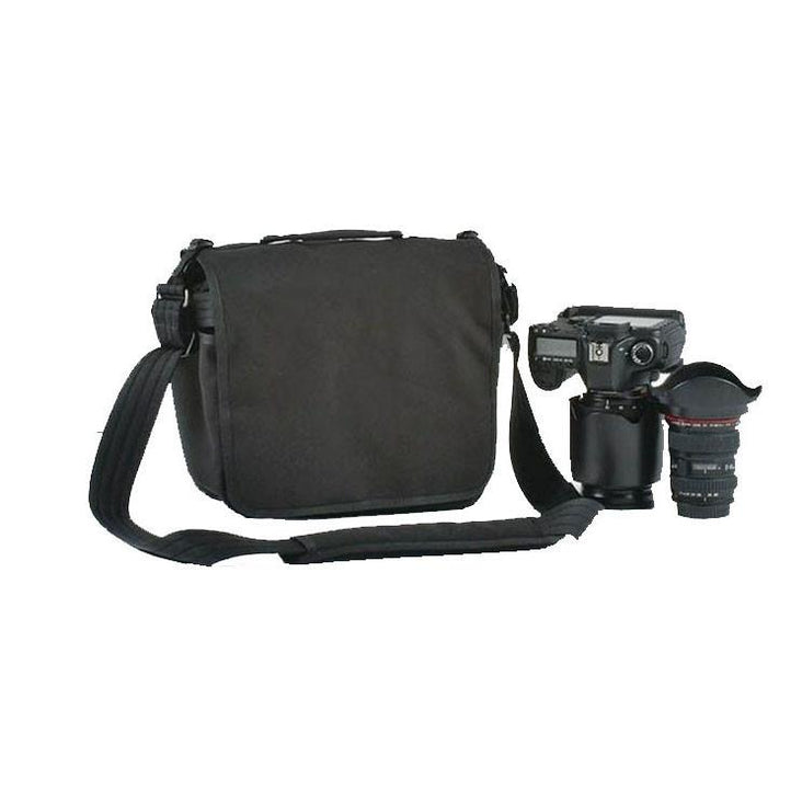 - Accommodates 2-4 lenses in main compartment with DSLR body in front pocket