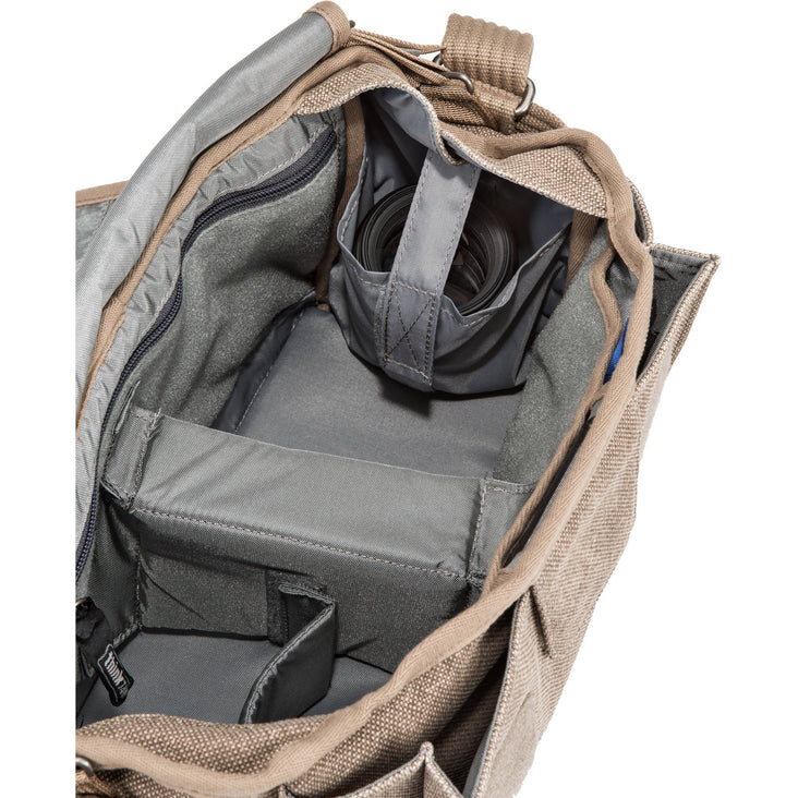 Keep your mirrorless or DSLR camera body, multiple lenses, tablet and accessories in the Retrospective 6 Shoulder Bag from Think Tank. For the photographer needing to carry a mirrorless or DSLR camera, several lenses, and accessories, this bag easily carries your gear and related accessories. An expandable front pocket fits an 8 inch tablet or notebook. Included sub-dividers and collapsible interior pockets are ideal for organization and added protection to your camera body and lenses. The bag is designed to be wider at the top, measuring at a full 13" for quick retrieval of your gear. The bag tapering to a smaller measurement at the bottom to help minimize any unwanted bulk. A dedicated organizer pocket on the inside of the bag keeps pens from getting lost, and necessities like batteries, chargers, and a wallet within easy reach. For even quicker access, keep important small items in the wide, rear zippered storage pocket.