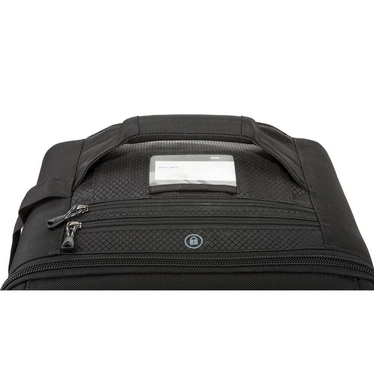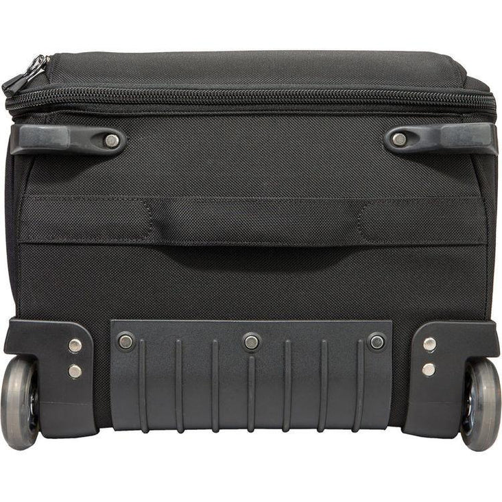 - A wide-set wheel base helps to prevent the case from tipping over.