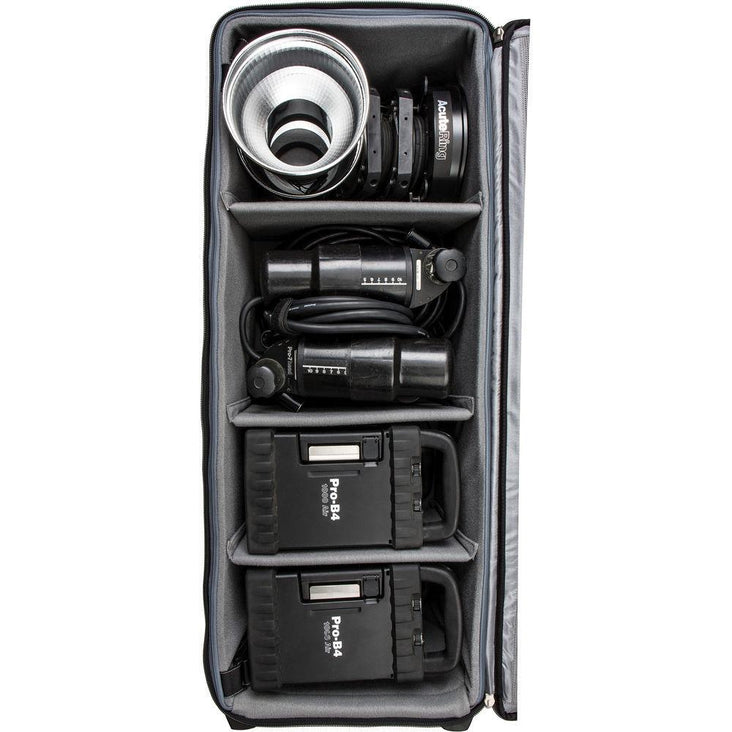 Safely store and transport entire lighting systems in the Production Manager 40 - Rolling Gear Case from Think Tank. It can hold 3-4 flash heads, 2-3 packs, light stands, umbrellas, softboxes, and other accessories.