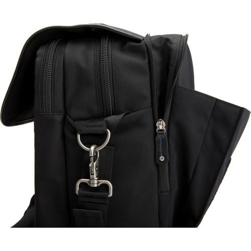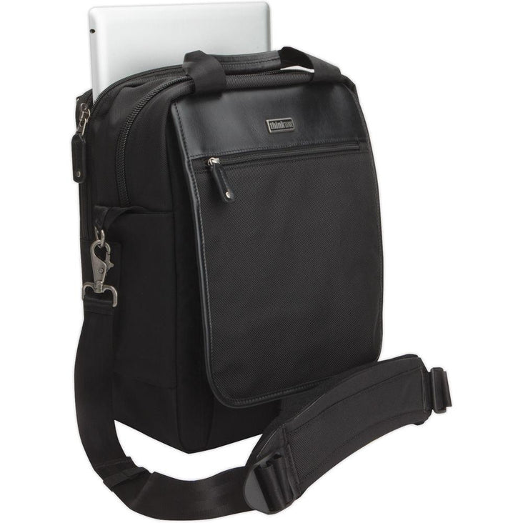 The ThinkTANK Urban Disguise 35 CLASSIC - Black is a camera shoulder bag that is designed to be stylish while being a fully functional option for the traveling photographer. This bag is crafted with genuine leather accents and panels, which contribute to a tasteful look that evokes the appearance of a well-designed briefcase.