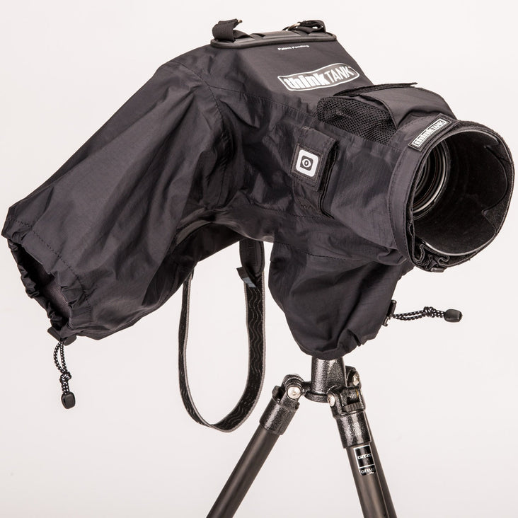 The Black Hydrophobia Rain Cover 70-200 from Think Tank is a sophisticated cover that protects your pro DSLR from moisture, wind, dust and dirt and permits you to shoot under adverse conditions. It's over-sized and accommodates up to a 70-200mm f/2.8 or shorter lens. Its over-sized design permits horizontal or vertical use and can be accessed by its left or right sleeves. Moreover, it can be easily used when your DSLR is tripod or monopod mounted.
