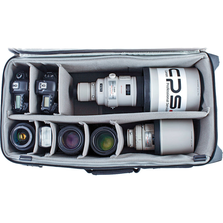 The Logistics Manager 30 - Rolling Gear Case from Think Tank is a large location bag designed to accommodate anything from a full DSLR system with multiple long telephoto lenses up to 600mm f/4 to a complete lighting system. As a camera bag, it will hold several DSLRs as well as many lenses and flashes. As a lighting bag, it will hold numerous flash heads, power packs, mono-blocks, medium sized softboxes, and small light stands. In either scenario, there is also plenty of room left for accessories in both interior and exterior storage pockets.
