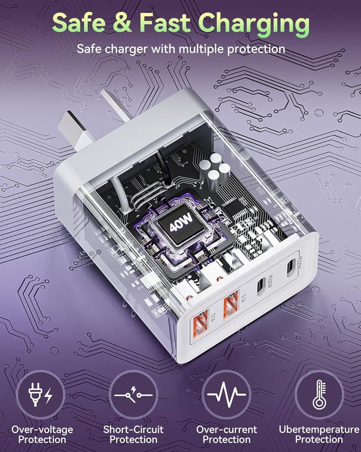 - 40W USB C Fast Charger has a maximum total output of 40W.