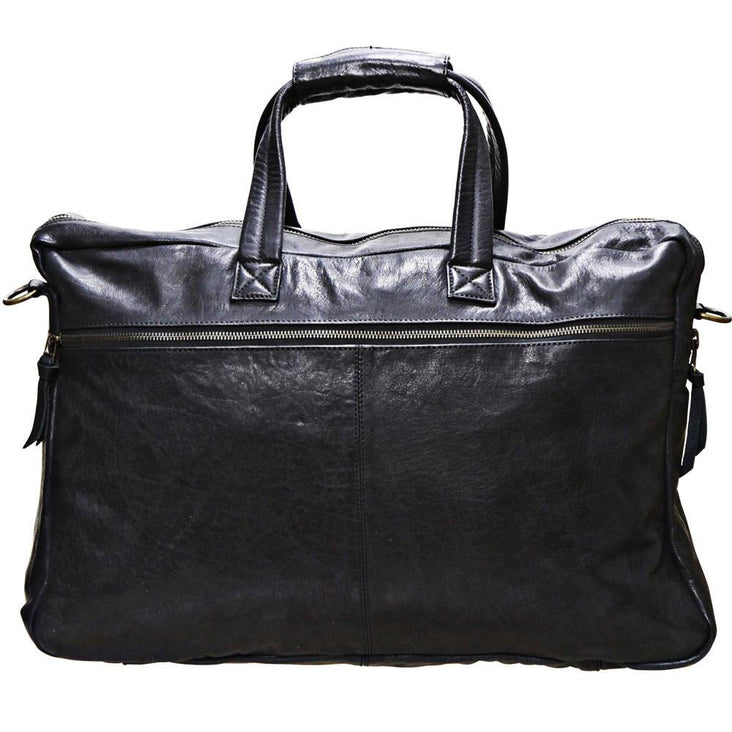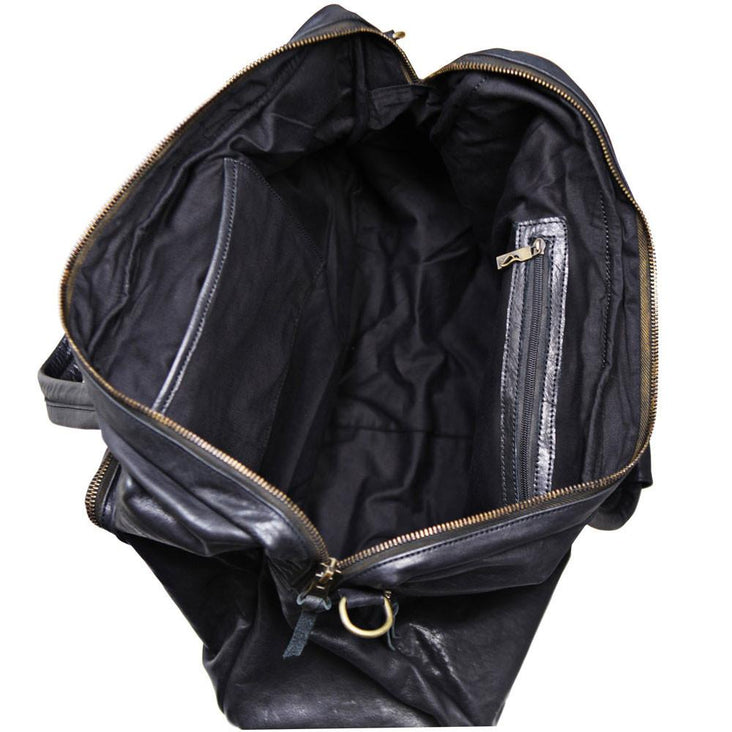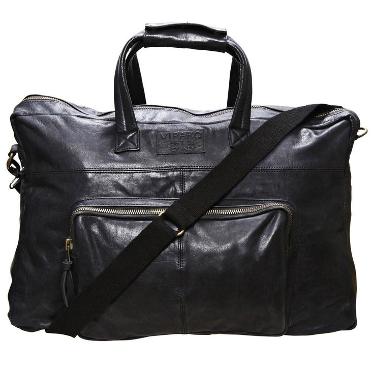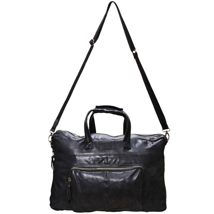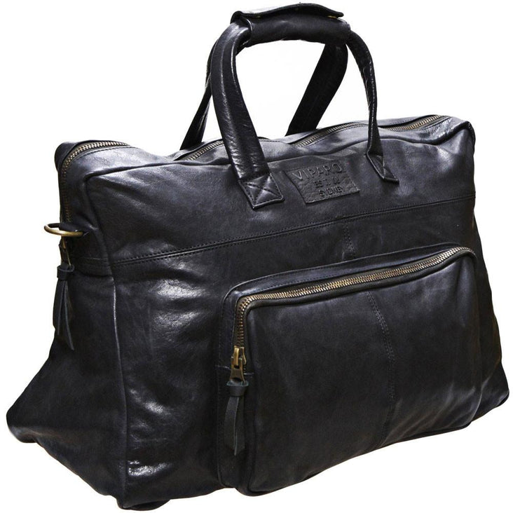 Black 20 Inch Vintage Leather Travel Duffle Hold All Overnight Bag