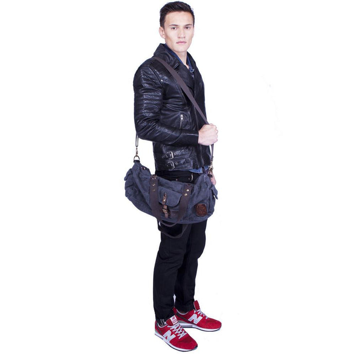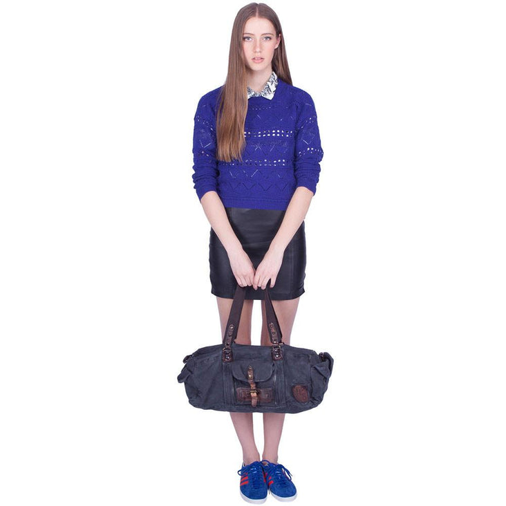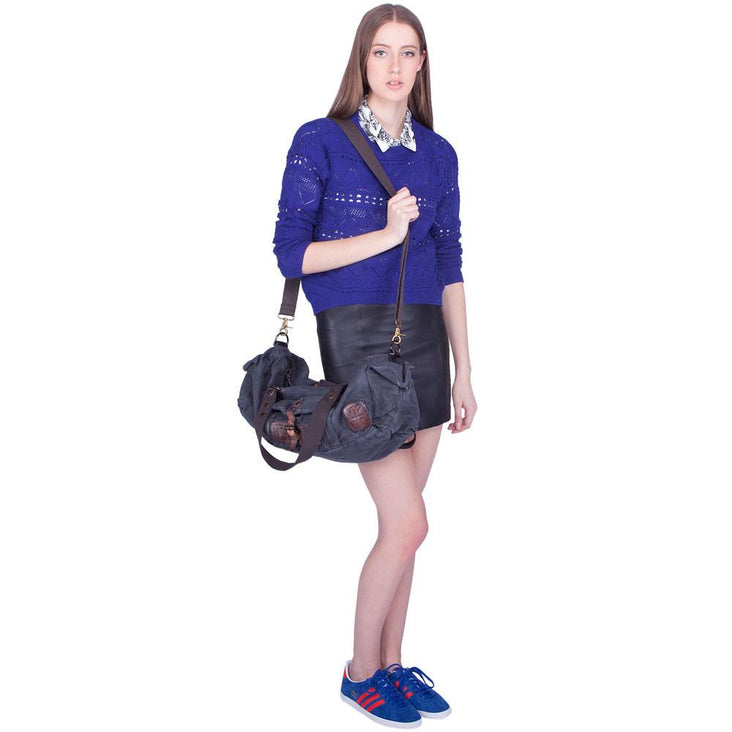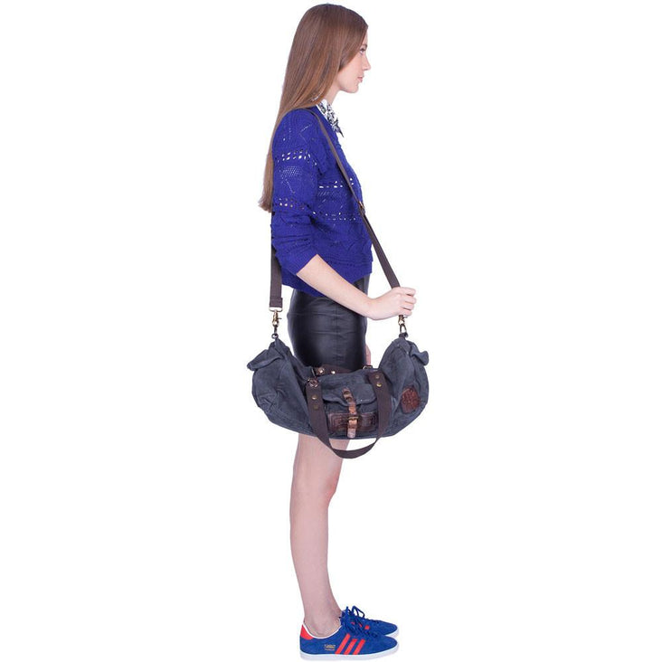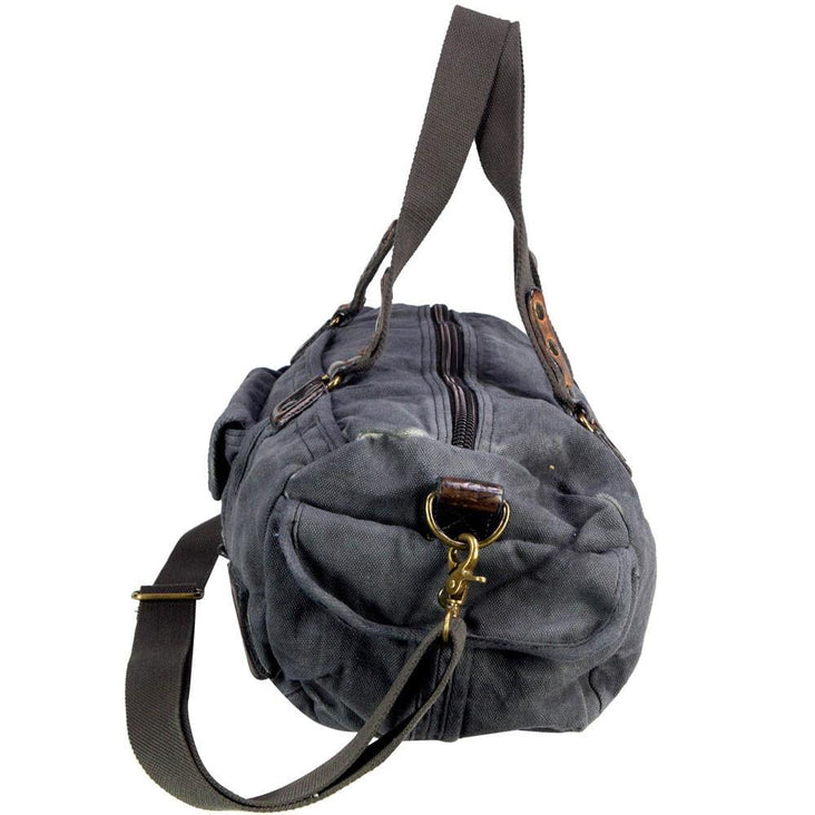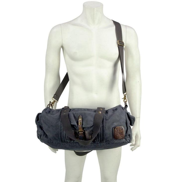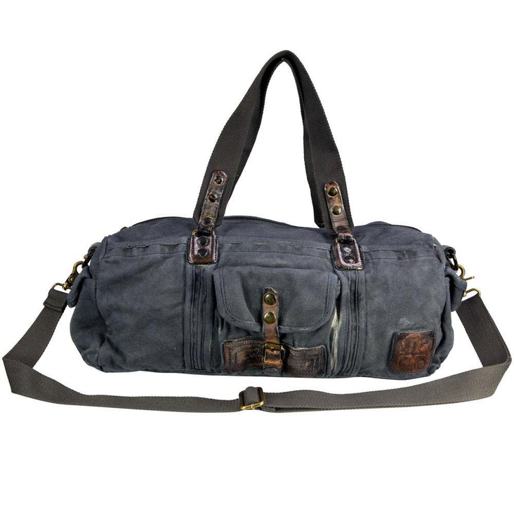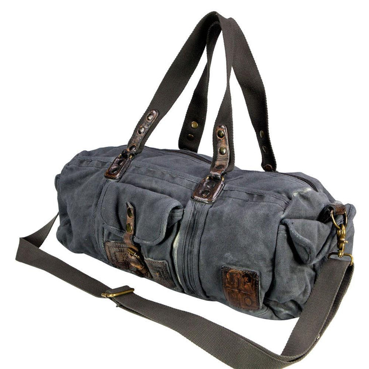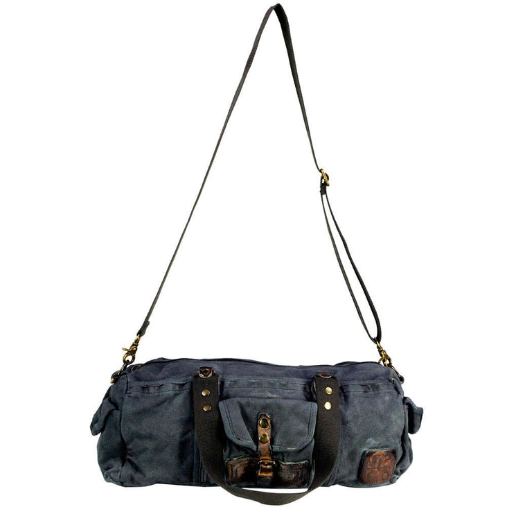 Blue Canvas Army Round Everyday Duffle Bag - Theo