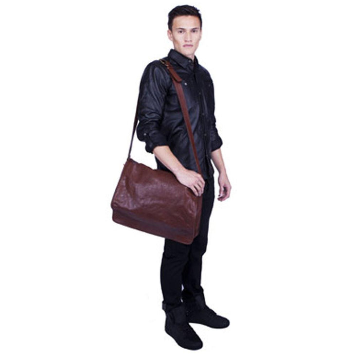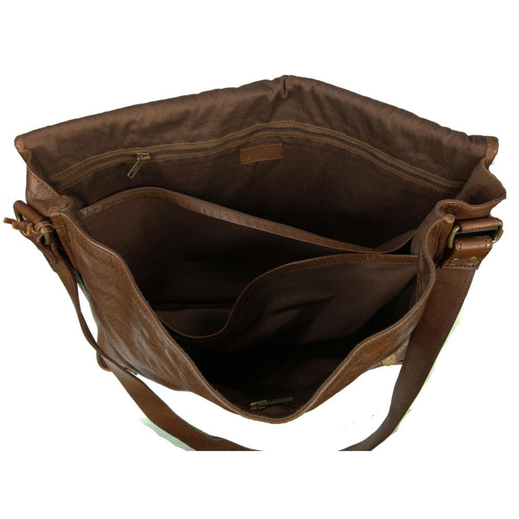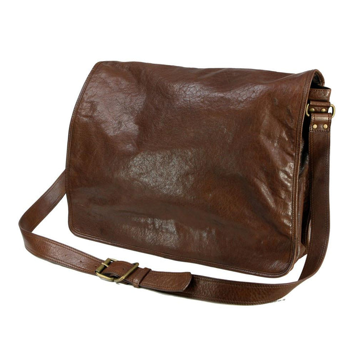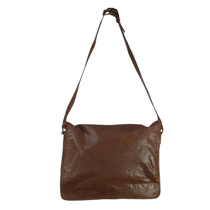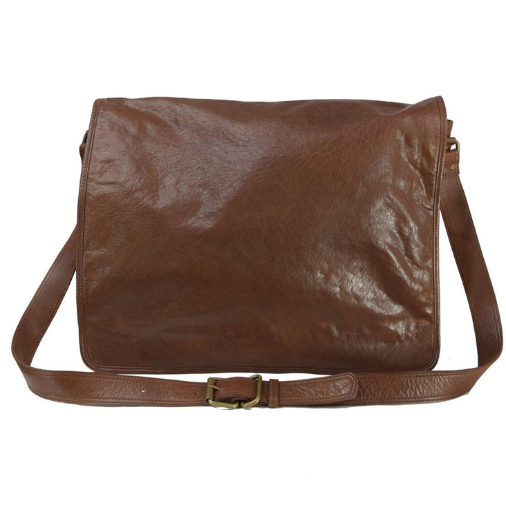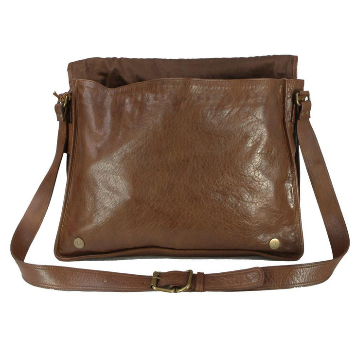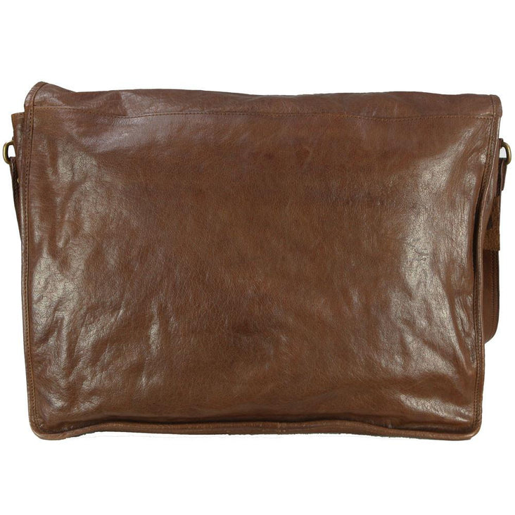 Tan 17" Vintage Wash Leather Messenger Satchel Bag