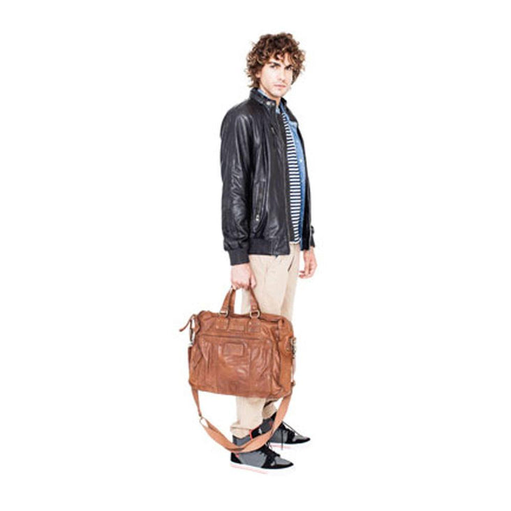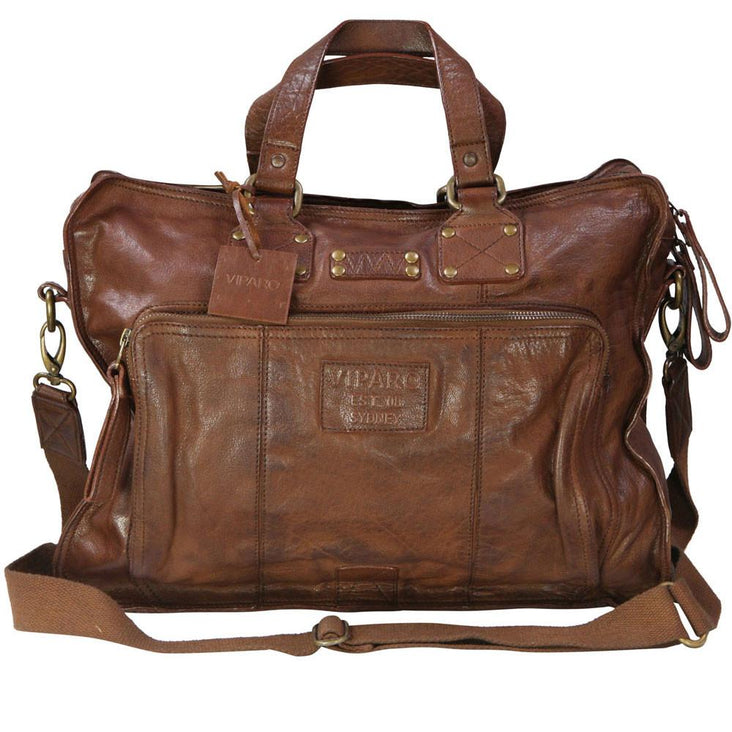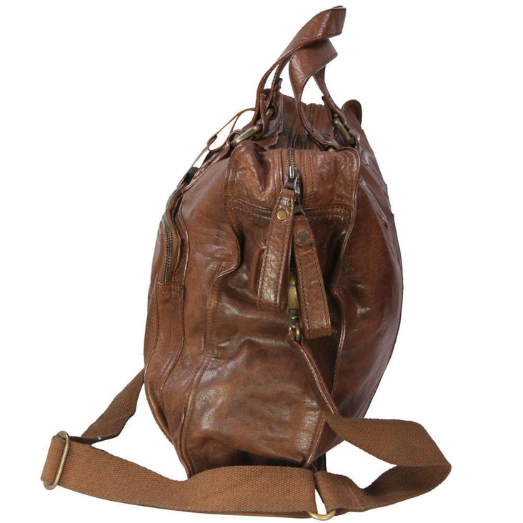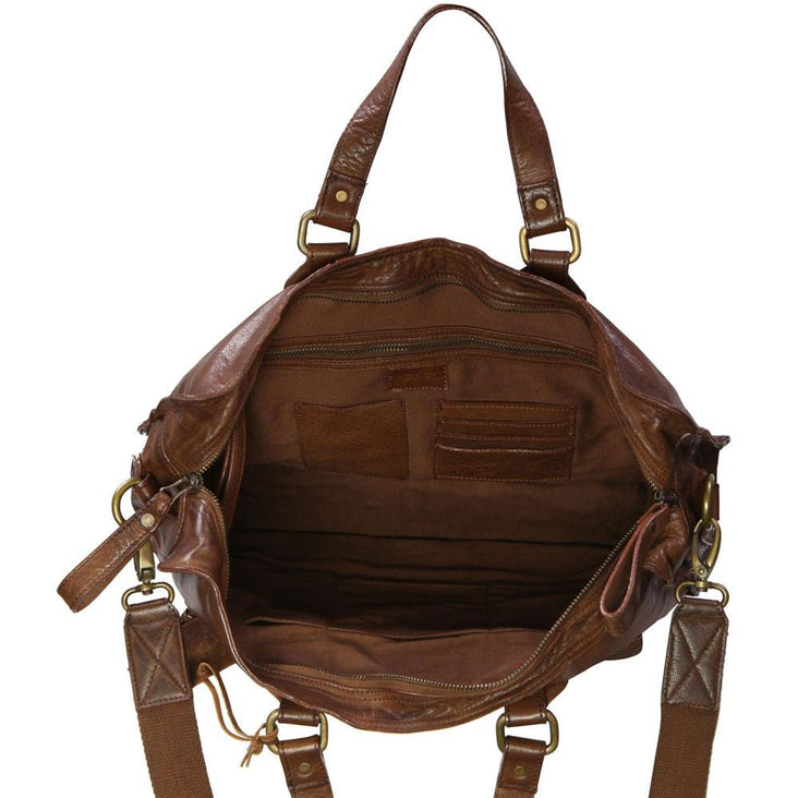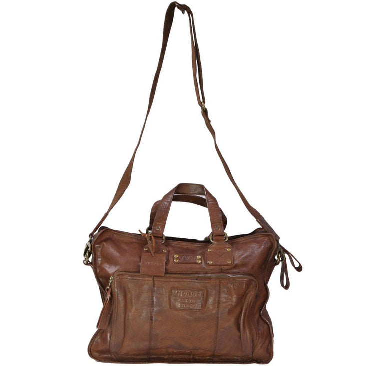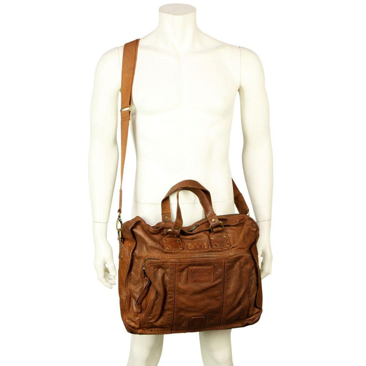 Tan 17 Inch Large Vintage Wash Leather Satchel Messenger Bag - Presley